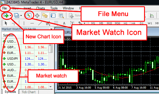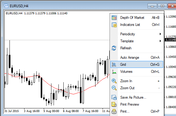 - Dans la fenêtre Market Watch, faites un clic droit sur la paire souhaitée et choisissez « fenêtre graphique ».