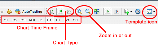 Pour changer le type de graphique, servez-vous de l’icône correspondante dans la barre d’outils : chandeliers, barres ou courbes, à vous de choisir. Le zoom avant/arrière et le choix de la période (de la minute au mois) se gèrent également depuis cette barre.