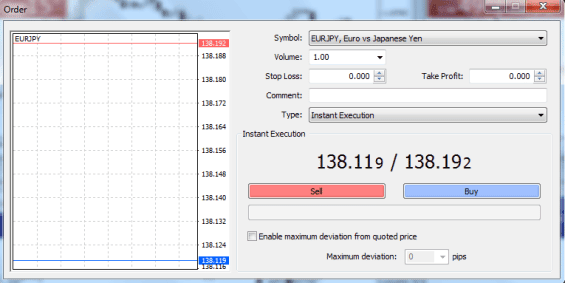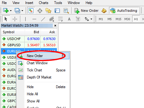 , Depuis Market Watch : Double-cliquez sur la paire ou faites un clic droit puis « nouvel ordre ». Définissez le volume, puis cliquez sur acheter ou vendre. Stop Loss et Take Profit peuvent être ajustés ici si besoin.