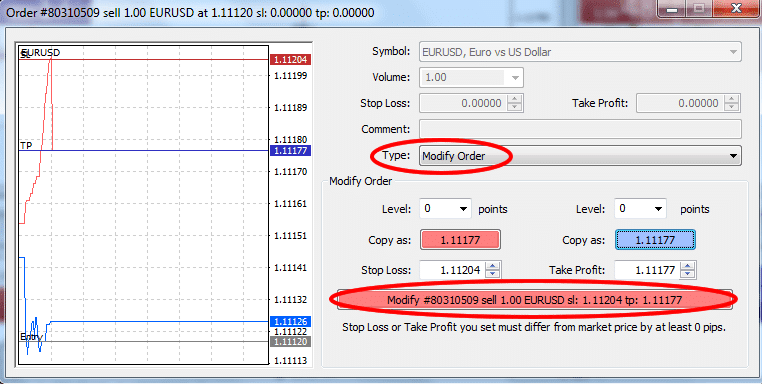 Pour ajuster un ordre, ouvrez le terminal (Ctrl + t), double-cliquez sur la transaction concernée. Dans la fenêtre qui s’ouvre, choisissez « modifier l’ordre » dans le menu déroulant à côté de « type ». Il ne reste qu’à entrer les nouveaux niveaux de stop ou de take profit, puis valider.