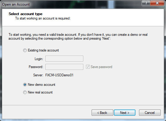 Dans la liste proposée, choisissez « Nouveau compte de démonstration » puis cliquez sur suivant.