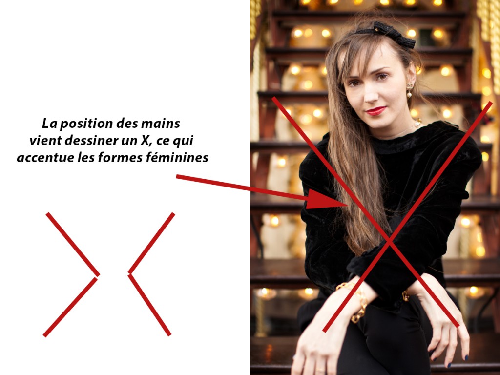 - Des bras simplement posés le long du corps épaississent la posture et alourdissent l’image.
