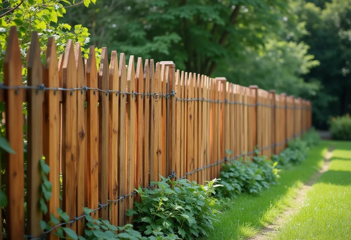 La clôture ganivelle est composée de lattes de bois verticales, généralement en acacia ou en châtaignier, reliées par des fils de fer galvanisé. Ce type de clôture est particulièrement apprécié pour son aspect naturel et sa capacité à s’intégrer harmonieusement dans divers paysages. Les piquets en bois, souvent en acacia, sont choisis pour leur résistance naturelle aux intempéries.