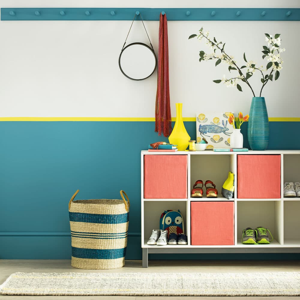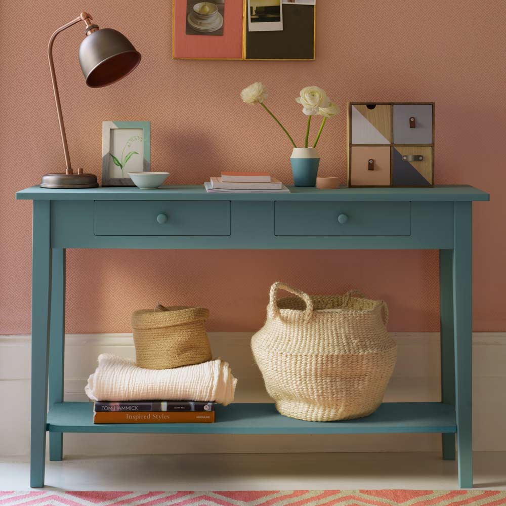 Crédit image : Dominic Blackmore Utilisez votre couloir comme un endroit pour expérimenter avec des couleurs complémentaires. Ce modèle de couloir coloré a audacieusement mélangé rose corail et bleu sarcelle, couleurs opposées sur la roue de couleur — et il fonctionne si bien. Le ton rose du papier est assorti à un coureur pour ajouter un élément de coordination, ce qui permet au buffet peint en bleu de se faire remarquer. Prouver à quel point les objets attirent, en ce qui concerne la couleur.