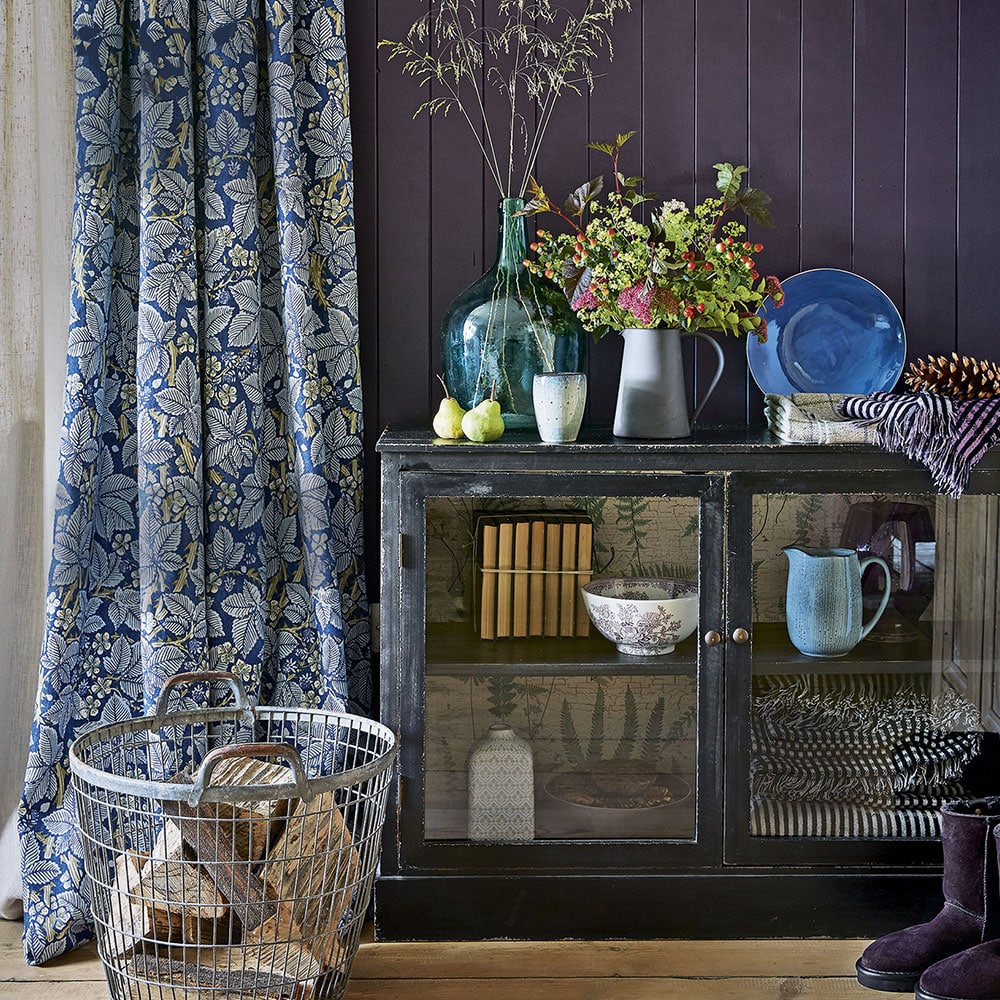 Crédit image : Mark Scott Créez une ambiance chaleureuse et réconfortante avec de beaux tons riches, comme la couleur baie de ce mur lambrissé. Ce look est super serré et hivernal, avec un rideau qui exclut les courants d’air qui gardera votre maison merveilleusement au chaud – mais le rideau à imprimé feuilles bleu et blanc le rend plus que approprié pour les saisons les plus ensoleillées. Obtenir le look Acheter maintenant : Ideal Home Pisa Table, £179, Very Acheter maintenant : Ideal Home Bailey Pendentif, £24.99, Very