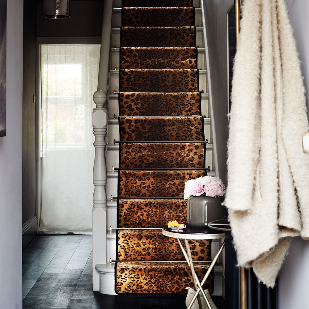 Crédit image : Catherine Gratwicke C’est un look efficace, mais simple à réaliser, car il n’implique pas de décoration élaborée partout ailleurs. Il est à noter que les escaliers ont été peints en blanc, par rapport aux planchers de bois foncé, de laisser le motif se démarquer. Obtenir le look Acheter maintenant : Chemin d’escalier similaire, Animal Print Tapis