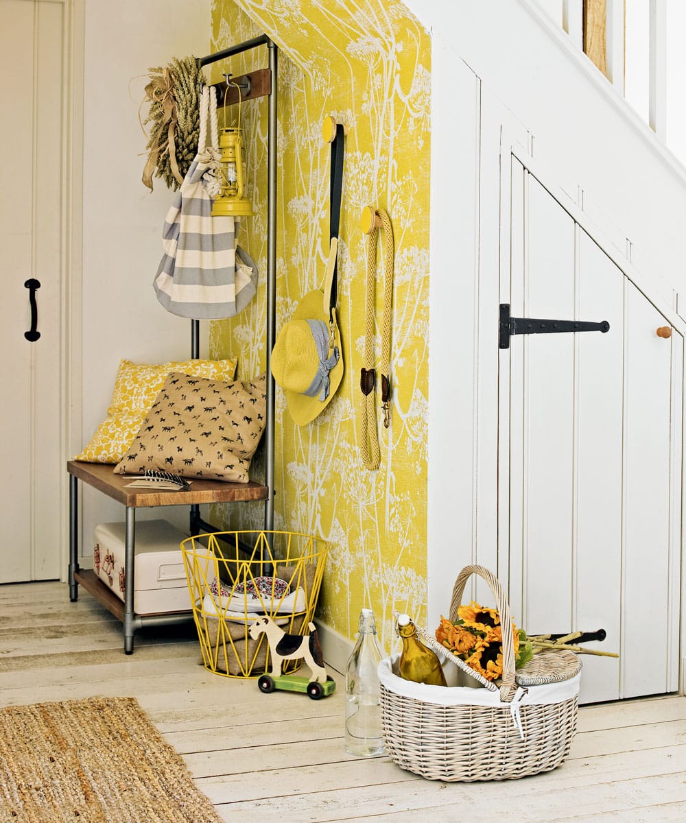 Crédit image : David Brittain Laissez entrer le soleil avec les jaunes des champs de maïs et les bois rustiques, tous inspirés par le meilleur de la nature. Éclairez un espace sombre sous l’étage avec un revêtement mural jaune beurre avec un feuillage de grande taille. Vous sentez-vous inspiré par ces couleurs de couloir ? Happydécoration !