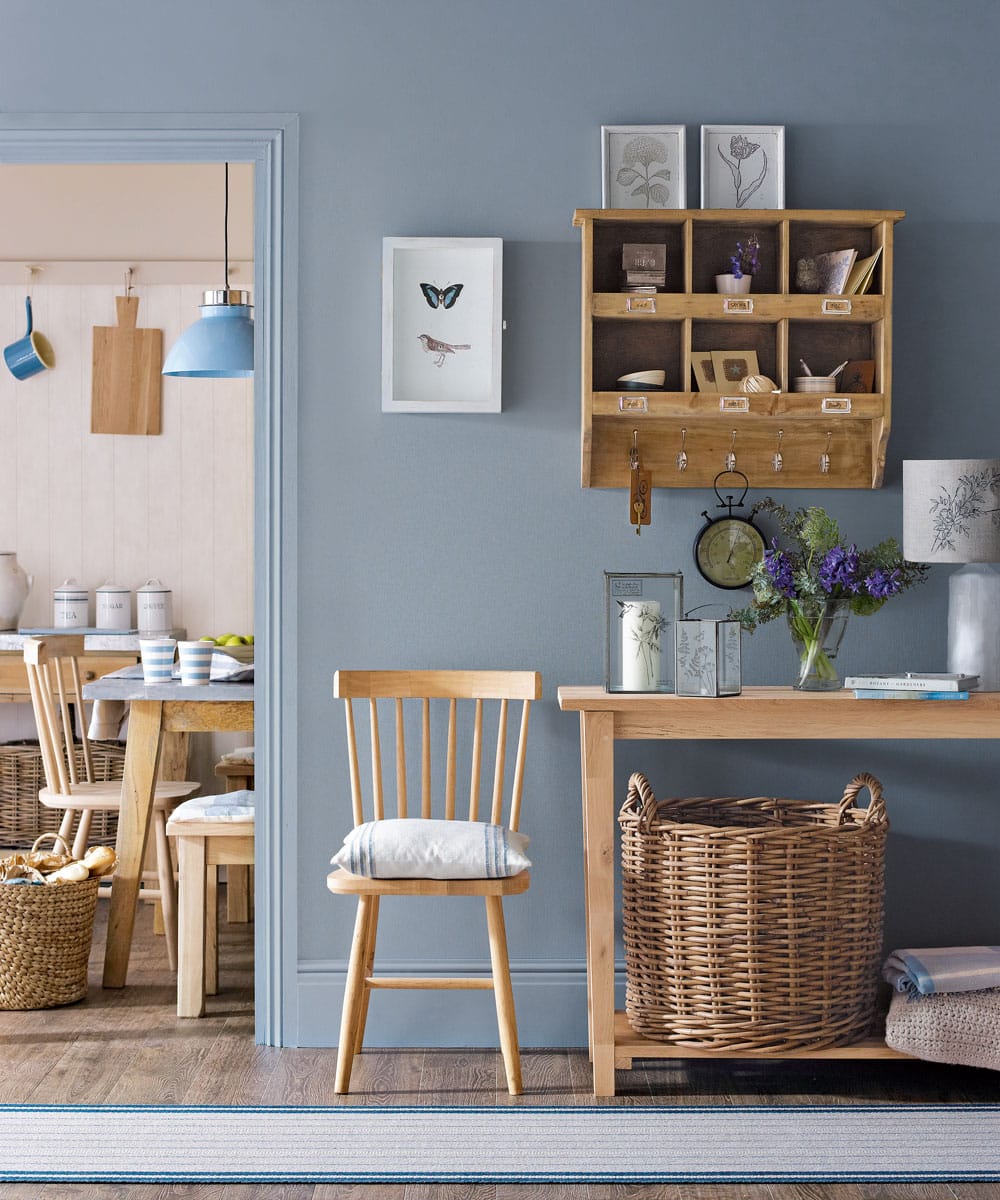 Crédit image : Dulux Traditionnellement petit et étroit, le couloir moyen manque souvent d’espace et de lumière. Sélectionnez donc une nuance telle que la Brume Blanche de Dulux pour l’ouvrir. Avec une ardoise propre à travailler, vous êtes alors libre d’ajouter une florissante unique, qui est là où peindre le plafond, la porte, ses entourements et une bande en bas d’un mur entre. La brume minérale bleue douce de Dulux garde les choses fraîches et évoque un thème côtier subtil Toutes les nuances ici sont tirées de la gamme Easycare Washable & Tough de Dulux. Cette peinture est plus susceptible de résister aux éraflures comme des marques, ce qui dans une zone à fort trafic comme un couloir, est un énorme avantage.