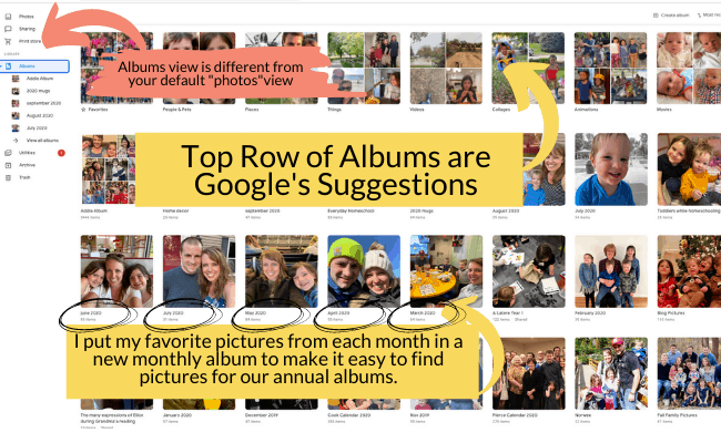 Chaque mois, je sélectionne mes images favorites et constitue des albums dédiés (« Noël 2022 », « Vacances Bretagne », etc.).